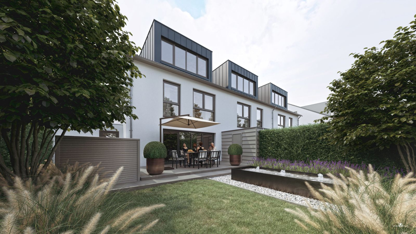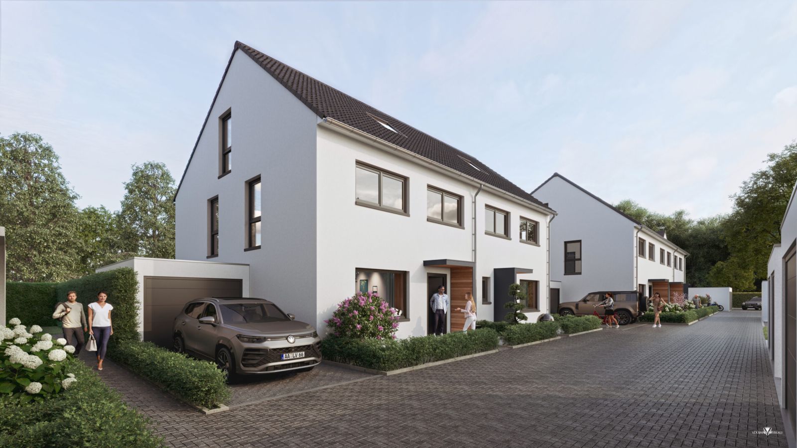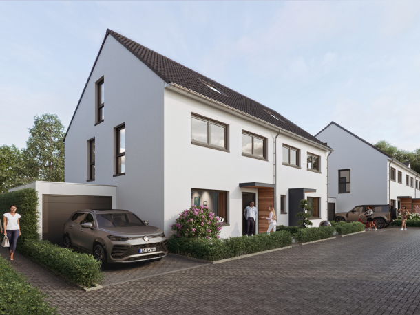 Ihr neues Eigenheim liegt in einer privaten Anliegerstraße. Das bedeutet: Keine Autos vor der Tür, sicheres Spielen für die Kinder und dennoch in 5 Minuten am Rhein oder in der City.